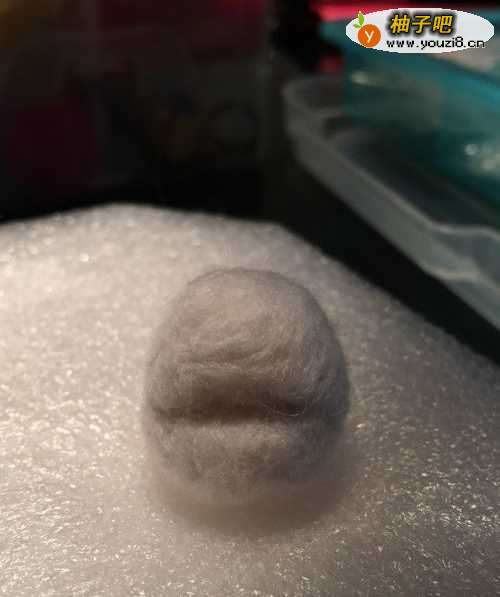 手芸棉制作基础椭圆形填充白色羊毛嘴巴部分使劲往下戳