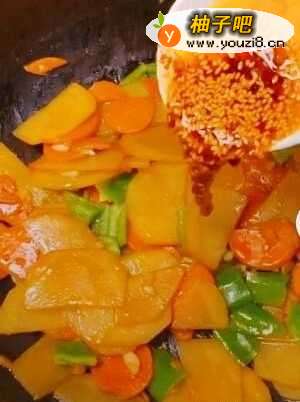 9下一勺辣椒油,翻炒几下就可以出锅了。