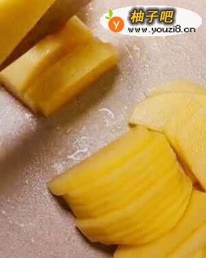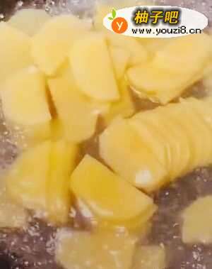 青辣椒切小块,葱花、蒜瓣切细,土豆切片。
