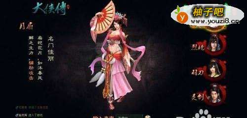 月扇,拥有众多BUFF,会单体加血、群体加血,防御力高、生命力极强,再加上造型漂亮,是《大侠传》中的人气选择职业。