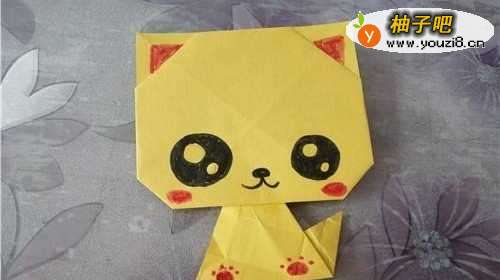 6翻到正面,我们用水彩笔给花猫画上表情就可以了,下面是完成图。