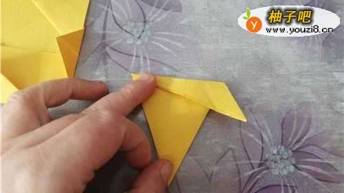 4我们再来折小的彩纸,把两角对折,如图二的样子。