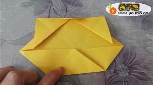3然后,再把下面的角上折,把左右两侧的角分别向内折,如图所示。
