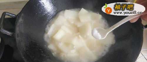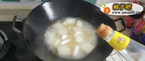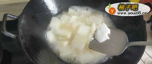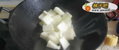 2将切好洗净的冬瓜块倒入锅中煸炒。