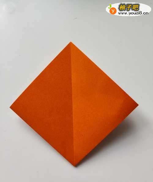 把正方形的纸平铺在桌子上。横向对折,纵向对折,打开,再斜对折,在纸上折出米字折痕。
