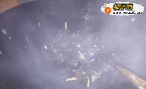 4葱姜丝爆香后,倒入木耳进行翻炒,也不需要炒很长时间,这些食材都是易熟的。