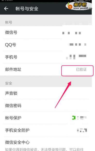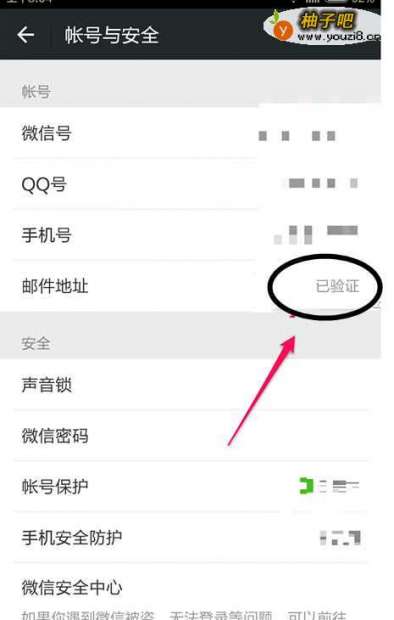 9回到微信账号与安全的页面,您会看到已经验证的邮箱地址。