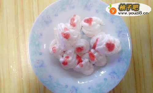 9把奶酪从口里挤出来,挤成螺旋状。