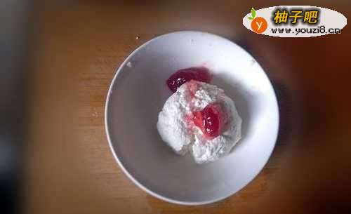 6加入一点草莓酱和白糖。