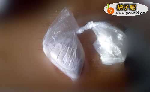 8把奶酪装到保鲜袋里。在保鲜袋上剪个口。