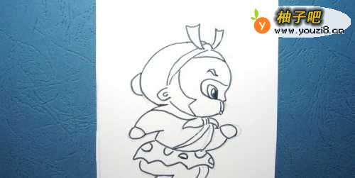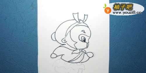 3接着,用黑色的彩色笔画出卡通孙悟空的肩膀和手臂的图形出来,这里采用Q版简化的方法来画出图形,如下图所示。