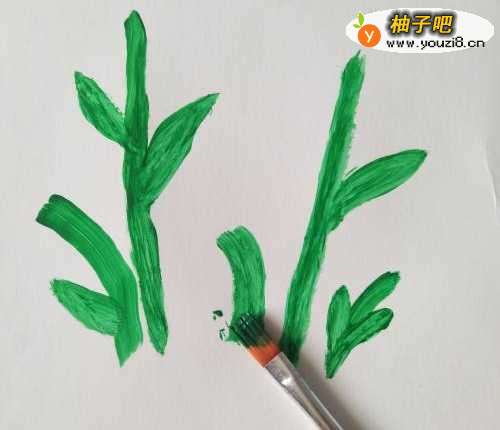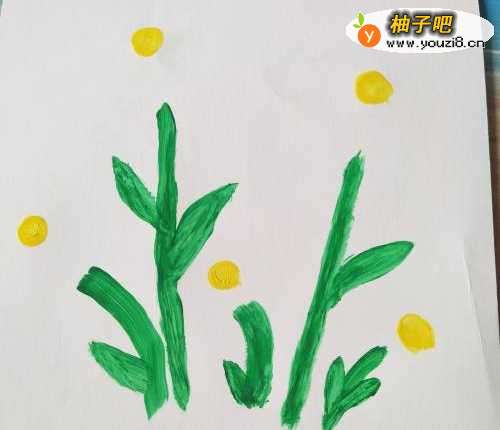 3用手指沾好颜料印到枝杆的上方作为花蕊,如下图所示。