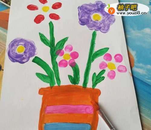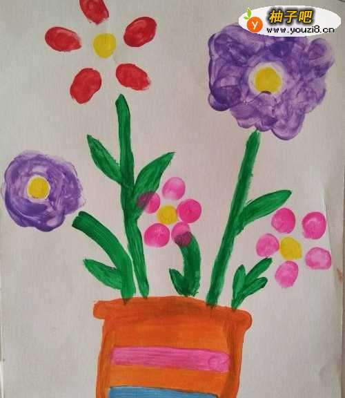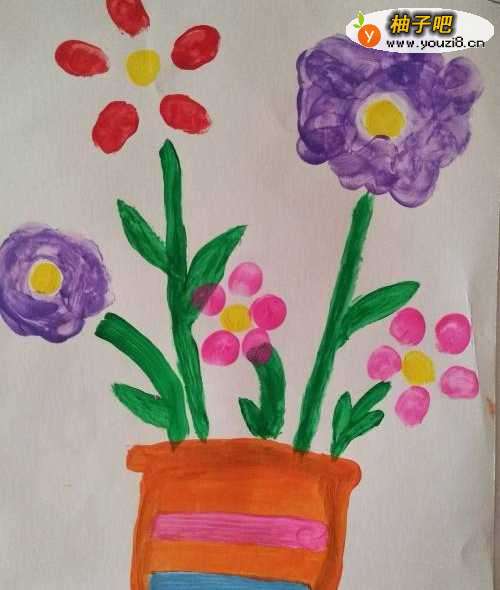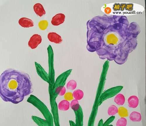 鲜艳的颜料,喜欢手工操作的孩子,美好的亲子时光。今天我们一起来看看指纹花朵的简单画法。