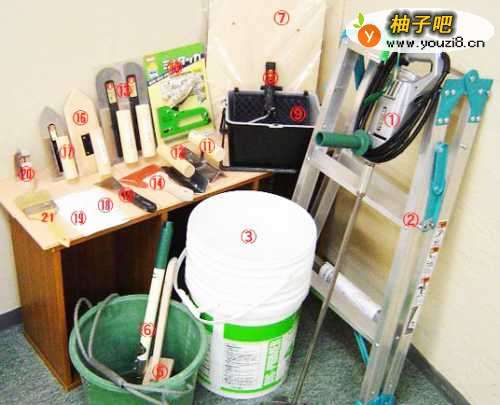 搅拌器 乳胶桶2~3个,镘刀、脚踏梯、量水器皿、美纹胶纸等防护用品、刷子、抹布等清扫用品