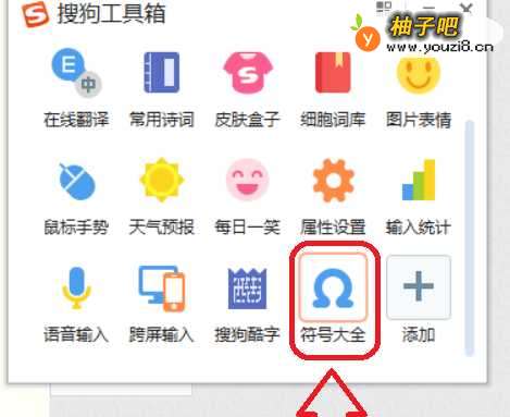 4这时候会弹出【搜狗工具箱】,往下滑找到并点击【符号大全】,如下图所示