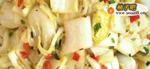 将白菜梗切小块,加葱段、姜片、少许辣椒、极少植物油下锅,速喷陈醋小炒。可软化、扩张血管,缓解高血压,抑制血糖值升高,还辅助治疗感冒,杀伤各种病菌。