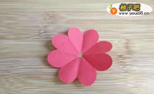 第六步:将剪好的形状展开,简单的小红花就完成了。