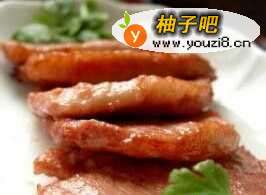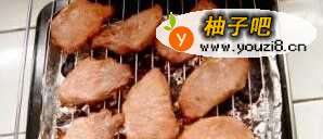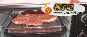 11将烤好的叉烧肉取出,切片上盘,淋上烧熟的叉烧汁,即可食用。