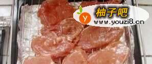 将猪里脊肉洗净,控干,切成2厘米厚的大肉片,备用。