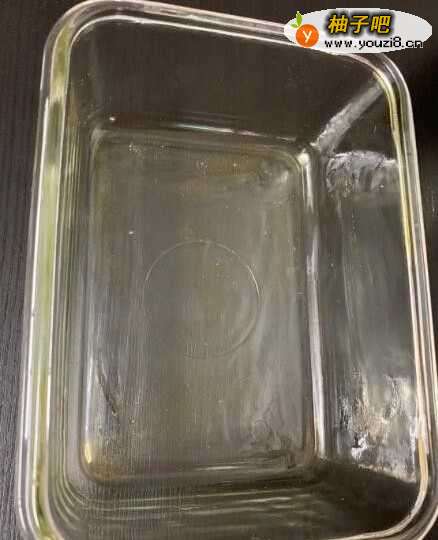 7然后我们取一个容器,四周刷芝麻油,放入淀粉糊,盖盖放冰箱冷藏;刷油歌塑是为了更好的脱模
