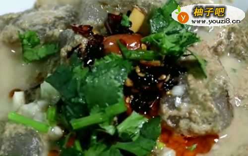 10然后放入酱油、醋、芝麻酱、蒜汁、辣椒油、香菜、搅拌均匀即可,非常的好吃