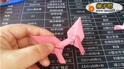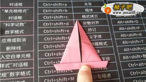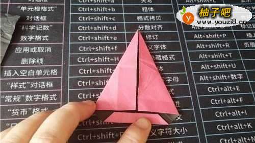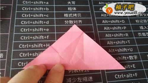 3再把下侧的边上折一次,如图一。把彩纸翻面,把下面两个角上折,如图三。