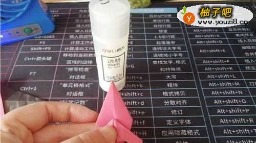 5中间部分用胶棒固定,如图一。其他的三张纸按照上面的步骤操作完成,如图二。