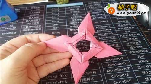 今天,我们来折一个好玩的飞镖。需要用到四张一样大的正方形彩纸,折好后用胶棒粘合在一起就可以了,过程很简单。