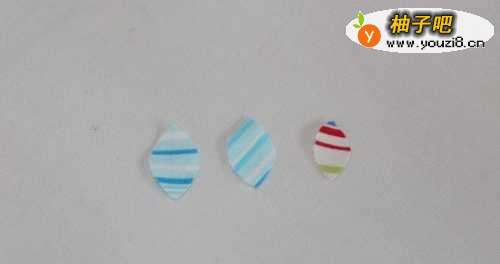 3然后剪下如图布料,我们需要剪两份,三个粘在一起做小鹿的耳朵,然后给小鹿粘到头部。