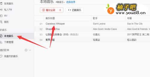 4在左侧“本地歌曲”中可看见下载好的音乐。
