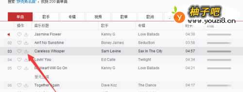 3在跳转页面出现歌曲列表,点击下载图标,进行下载。