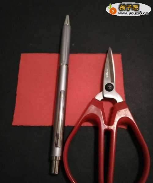 第一步,先准备好一张纸,一支笔和一把剪刀。