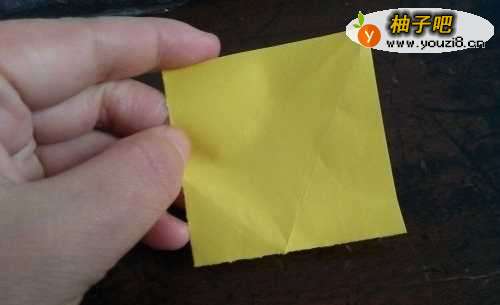 取一张7.5*7.5的彩纸,先把彩纸的对角线对折恩虚。