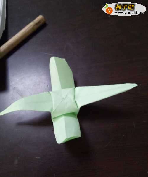 7将两边折上去,翅膀就折好了,画上眼睛,拉开,就折好了
