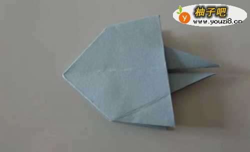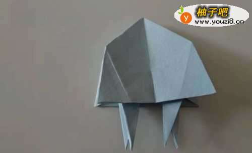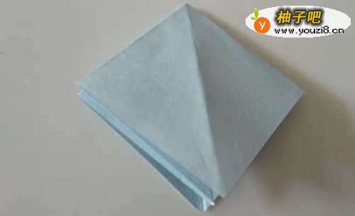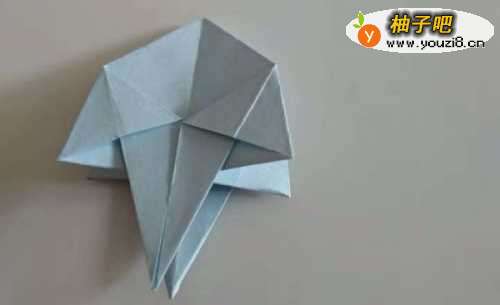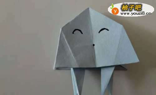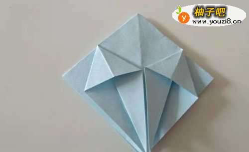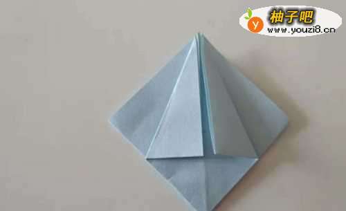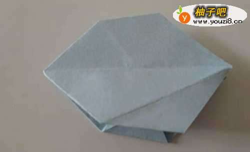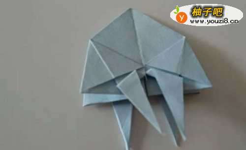 10这时再把折好的纸两面中间对折,形成如下图水母的形状。