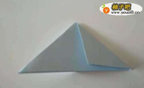 5折好后再展开,在三角形的二层层叠的地方用手指撑开,形成一个小的等腰三角形并压下去,做好后,就形成如下图的样子。同样,另外一面也做成这样的形状。