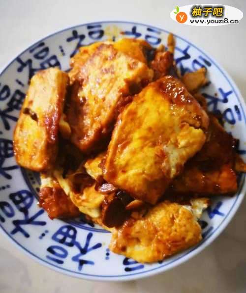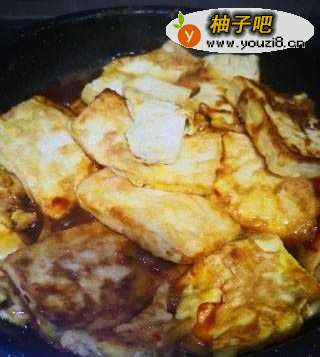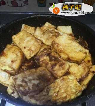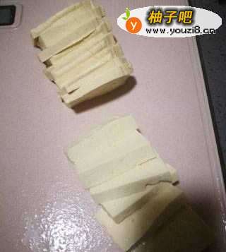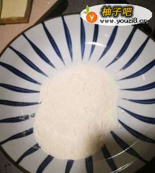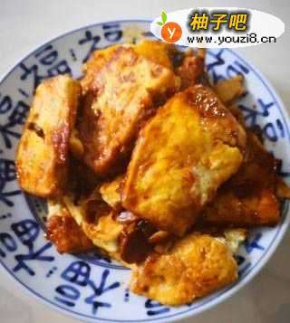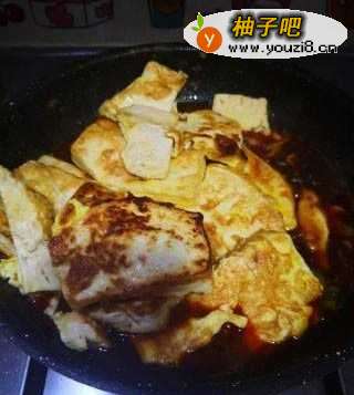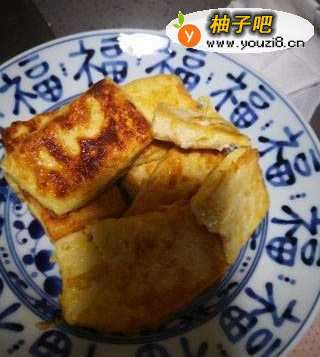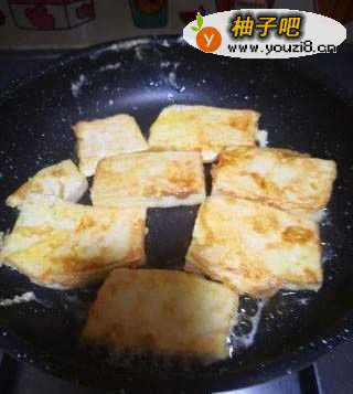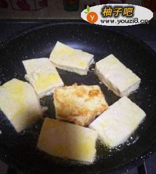 4锅中放油烧热,将豆腐块蘸上淀粉,再蘸一下蛋液,放入锅中。