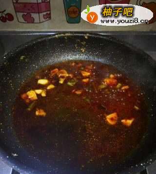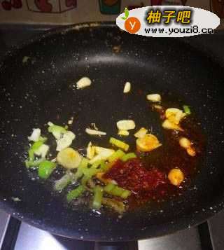 8锅中放油,放入葱姜蒜爆香,放入辣椒酱。
