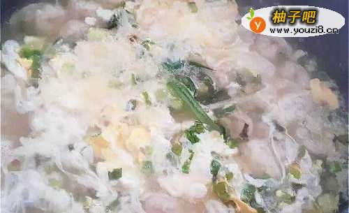 5起锅前加入盐、白胡椒粉调味一下,再把最后一颗蛋打散淋入锅中成蛋花状