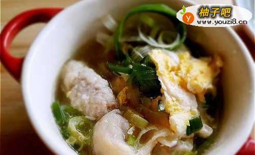 葱花、鸡蛋、鱼饺,三样家常的食材做出好滋味来。