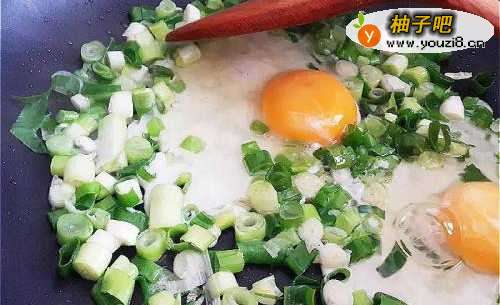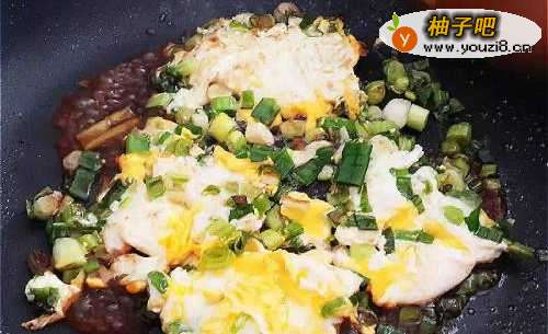 3蛋与葱花煎出葱花蛋香,酱油由锅边炝锅稍微煮出酱香味