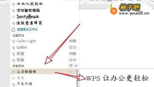 7这时到wps2019的编辑区域,再次点击字体下拉菜单,可以看到刚刚下载的云字体了。