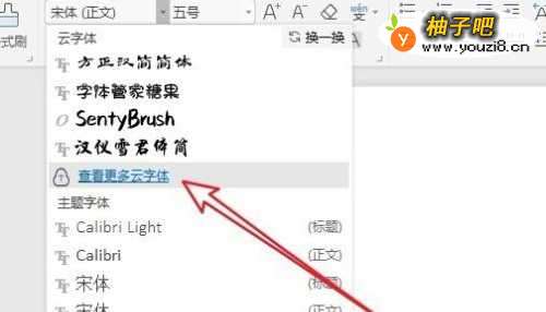 2在弹出的下拉菜单中,我们找到“查看更多云字体”的快捷链接。