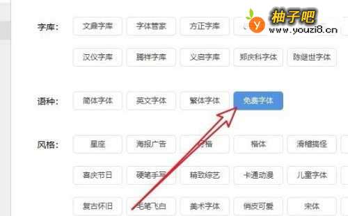 4在打开的筛选窗口中,我们选择“免费字体”按钮。