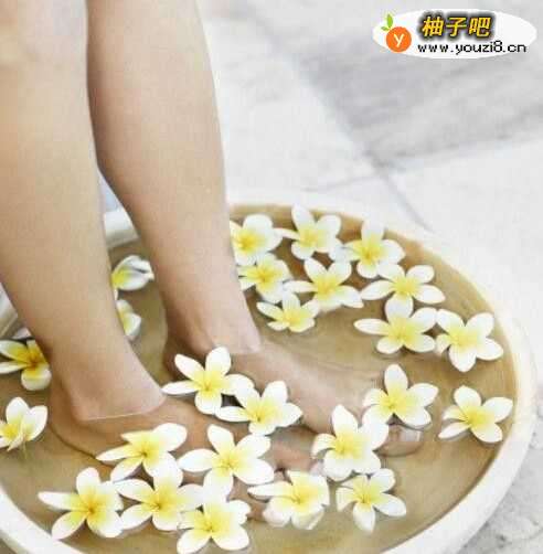 4泡脚时,可先用水蒸气熏脚,然后等水温下降至不烫伤皮肤,再把双脚放入水中泡。