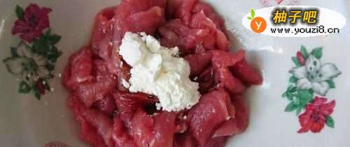 里脊肉切片,依次倒入料酒,酱油,生粉和少许食用油抓匀后腌制10分钟。