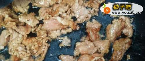 5将锅烧热倒油,放入腌好的肉片,滑炒至变色后盛出。