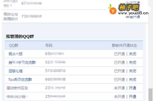 即可查看您目前正在管理的QQ群及其群邮件开通状态。