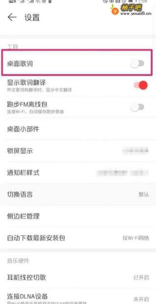 4进入设置主界面,点击【桌面歌词】,开启桌面歌词;
