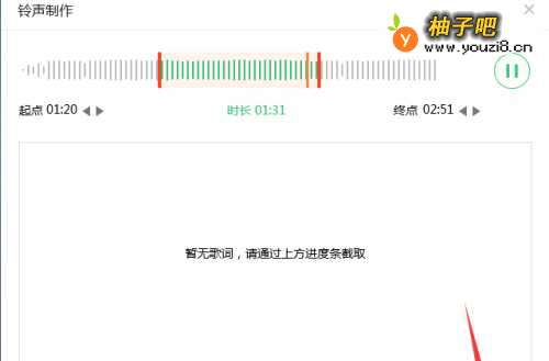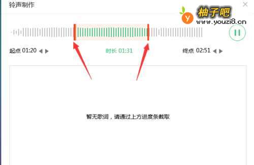 5通过拖动起点和终点两条线选择需要保存的音乐部分,如图所示。